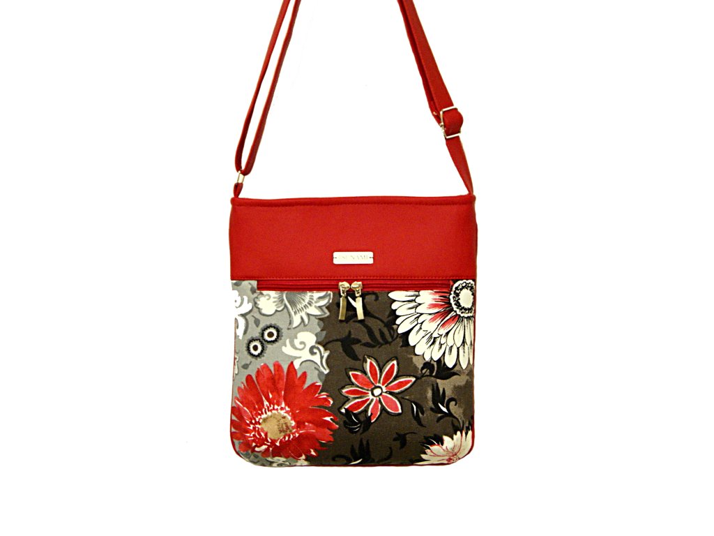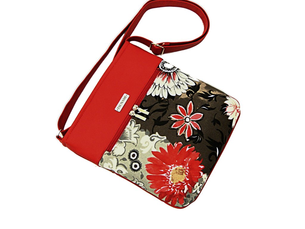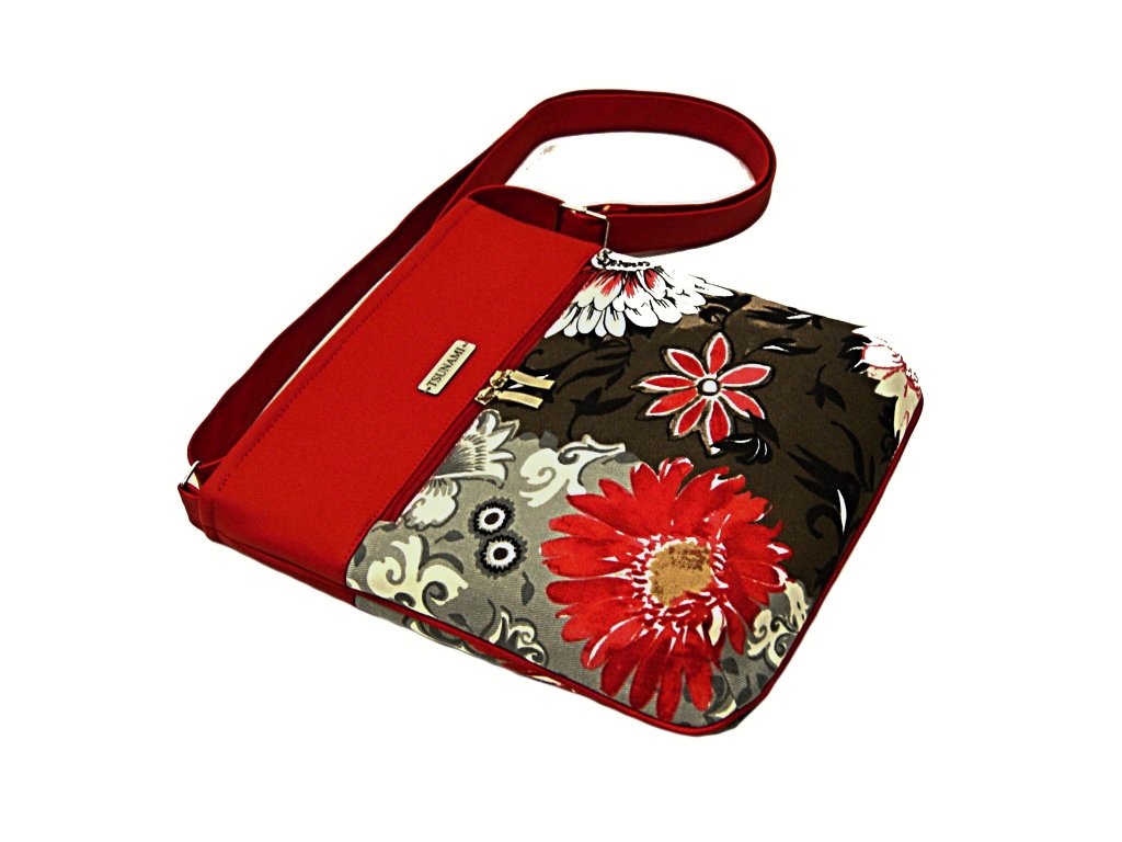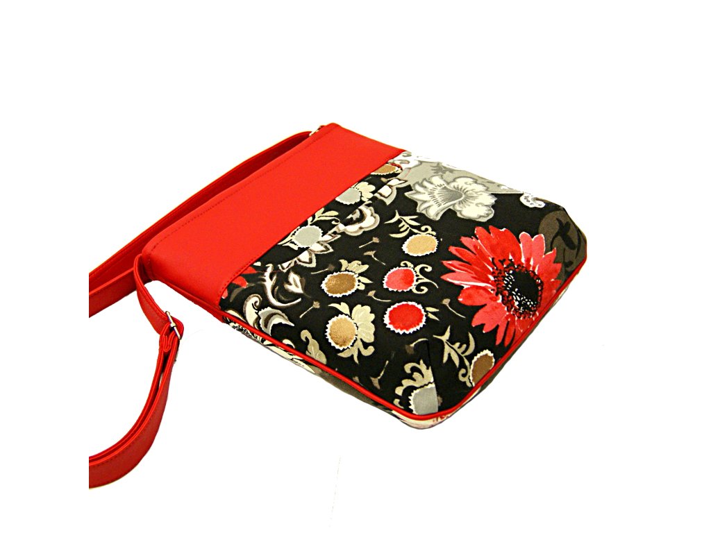 Kabelka vel. A5, je ušita z hrubší směsové tkaniny v kombinaci vysoko jakostní koženkou červené barvy.