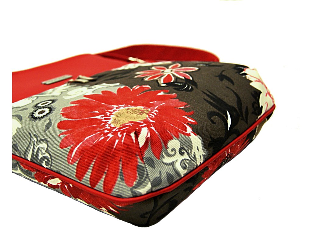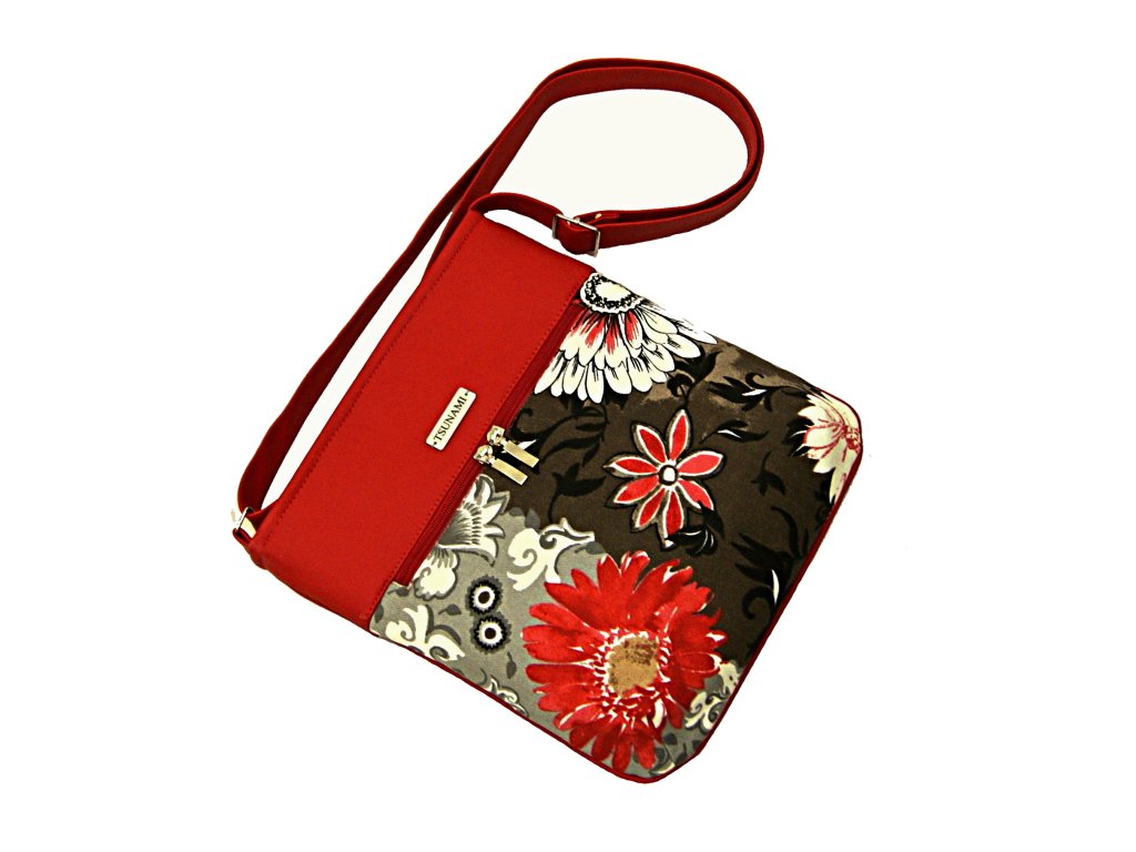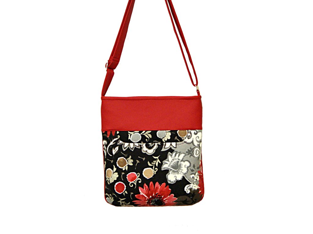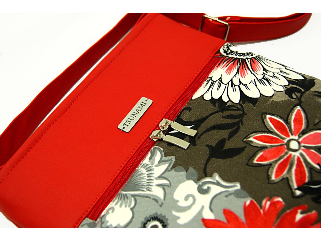 Kabelka vel. A5, je ušita z hrubší směsové tkaniny v kombinaci vysoko jakostní koženkou červené barvy.